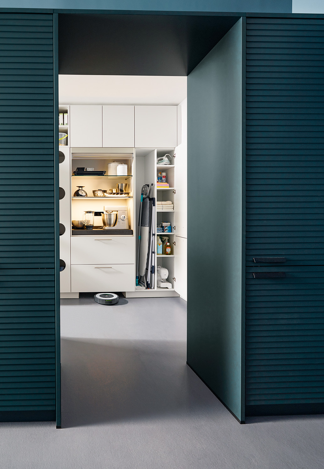 Tato kuchyně znamená potěšení pro všechny smysly. Jedinečná kombinace povrchů, dekorativního dubového dřeva, jemně zrnitého mramorového dekoru a výrazným předním prvkem Scala se sytě modrou lamelovou strukturou ztělesňuje nekompromisní eleganci a je lahůdkou pro oči. A pak je tu také velké množství malých doplňkových funkcí, díky nimž je kuchyň něčím výjimečná.