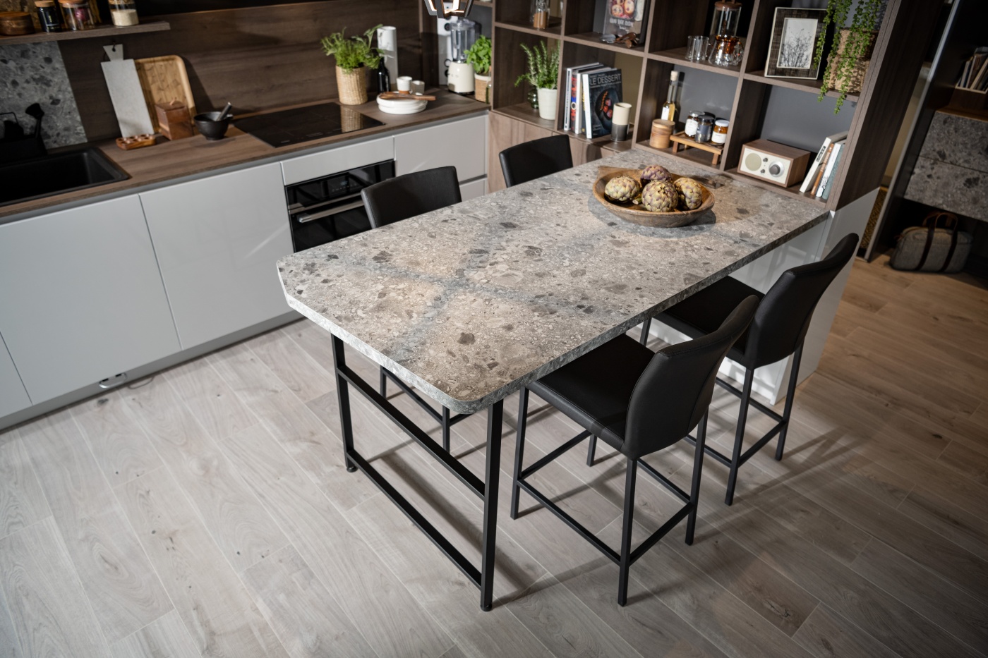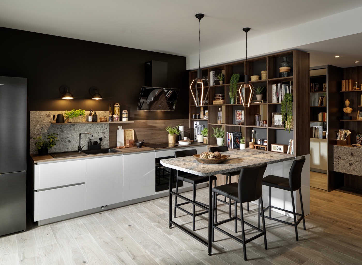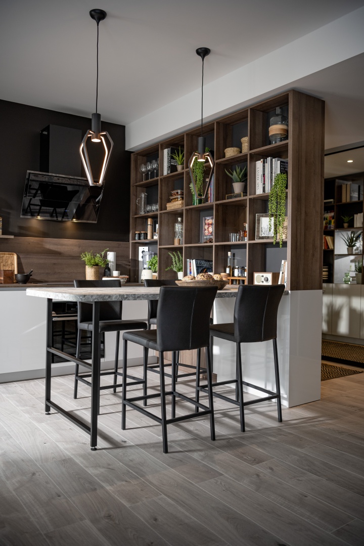 Alexandrovi a Christine je padesát a jsou uprostřed života. Poté, co se jejich dvě děti odstěhují, si chtějí své zcela přepracované zařízení užít naplno. Pár je hodně zaneprázdněný a oba milují organizaci ve věcech a chtěli kuchyň, která vyhovuje jejich životnímu stylu a estetickým požadavkům. Proto se rozhodli pro tuto otevřenou kuchyň, která spojuje eleganci a funkčnost. Oba dva jsou obzvláště ohromeni jednoduchostí nábytku ve tvaru písmene L a minimalistickými liniemi pracovní plochy, které dodávají interiéru městský charakter, a ten dokonale odpovídá jejich vkusu.
